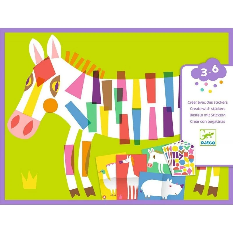 Jeu Djeco indiqué pour développer la créativité des enfants grâce à des autocollants repositionnables (peuvent être décollés et utilisés pour un autre modèle) Avertissement De Sûreté Ne pas appliquer