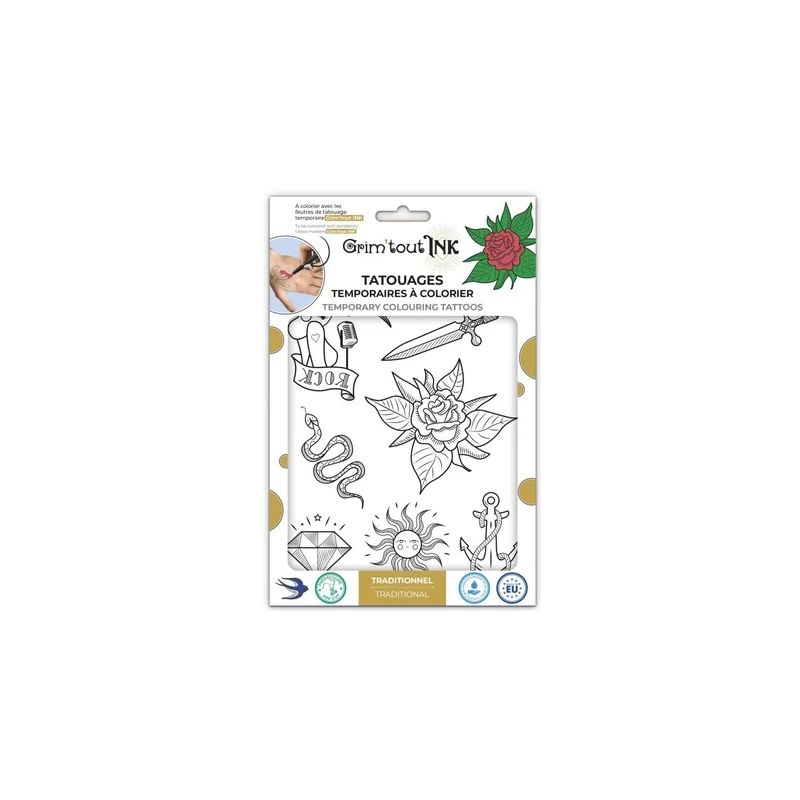 Grim Tout – Tatouages Temporaires à Colorier – Traditionnel