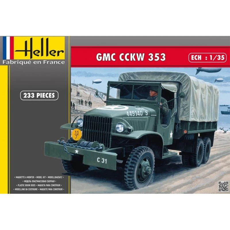 Les GMC sortant des bateaux et roulant sur les plages, lors du Débarquement en Normandie, apparaîtront toujours comme une image symbole de la Libération, tant il est vrai qu?une armée en campagne ne peut exister sans les moyens de transport et de support logistique. Construit à plus de 800 000 exemplaires, le GMC, camion bâché de 2,5 tonnes à 6 roues motrices, fut au camion ce que la jeep fut au véhicule léger. Les deux modèles principaux furent le CCKW-352 dit ?châssis court? et le CCKW-353 dit ?châssis long?, objet de la présente maquette. Sa silhouette caractéristique sillonna tous les théâtres d?opérations. Son aptitude à remplir sa mission dans les conditions les plus difficiles grâce à sa robustesse légendaire et à sa puissance, en fi