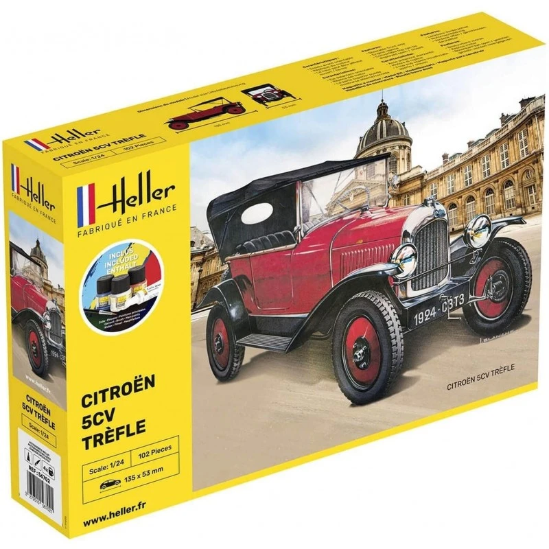 maquette Voiture Starter Kit Citroën 5cv Trèfle Heller 56702 1/24ème Maquette Char Promo andré Citroën Veut Produire Un Véhicule Simple De Conception, Bon Marché, Allégé, Sans Compromettre Sa Robustesse. Après La Type A, Sort La B2, Puis Un Modèle Plus Petit, Ce Sera La 5cv Torp.