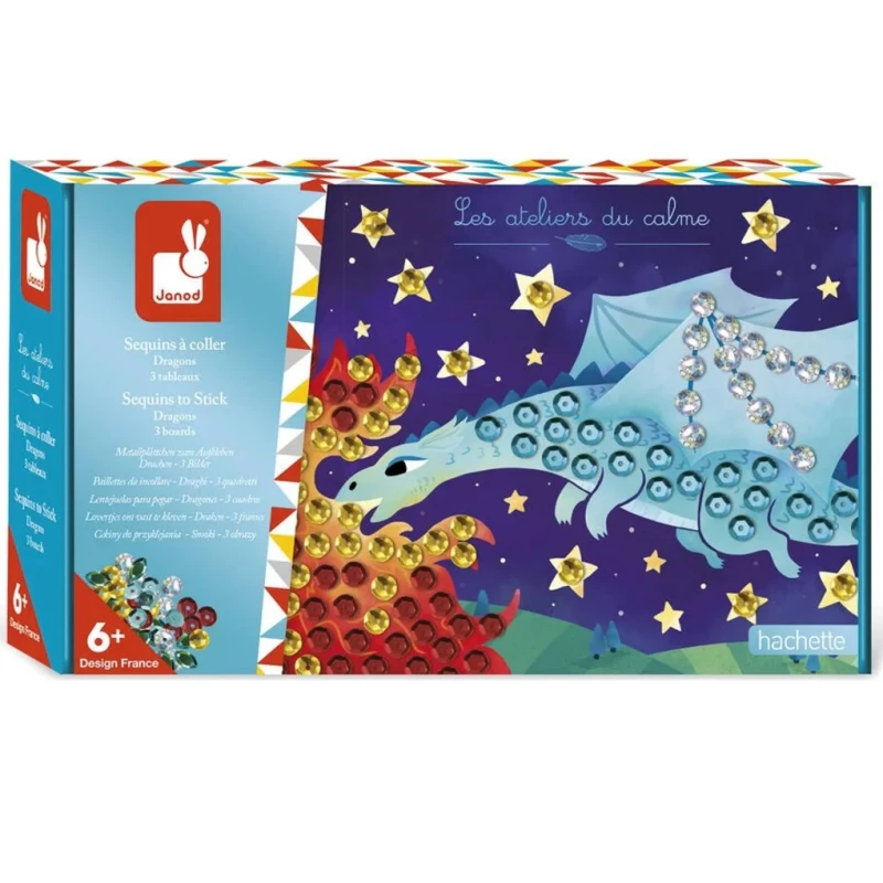 Janod – Loisirs Créatifs – Sequins à Coller – Dragons – 3 Tableaux