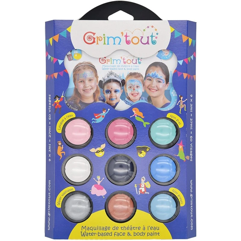 Coffret indispensable pour se maquiller afin de compléter son déguisement pour un carnaval, une fête déguisée… le coffret cadeau de maquillage idéal, pour les débutants comme les initiés. Un maquillage non gras à l’eau de qualité spécialement conçu pour convenir aux peaux délicates des enfants. Toujours dilué à l’eau, il s’applique simplement à l’aide d’une éponge ou d’un pinceau. Cette palette contient: – 9 couleurs en 4ml – 1 éponge – 1 grand pinceau – 1 livret de maquillage avec modèles pas à pas Avertissement De Sûreté Faire un test préalable au creux du coude, en cas de réaction dans les 60 minutes, ne pas utiliser le produit. Ne pas appliquer trop près des yeux et des muqueuses. Contenu du coffret Palette 9 couleurs