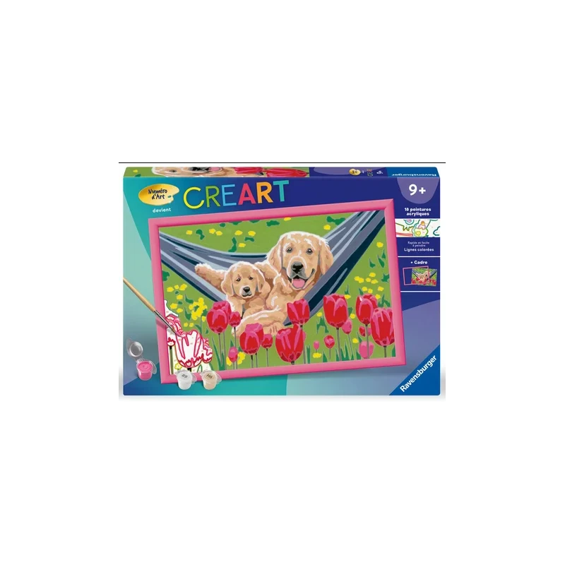 Ravensburger – Creart – Peinture au numéro – Labradors et tyulipes – 31x21cm
