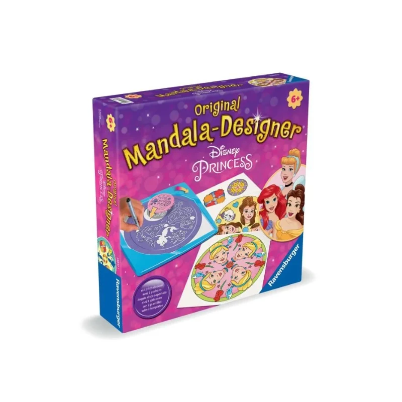 Pour dessiner une infinité de mandalas ! Le mandala consiste à réaliser un dessin à l’aide d’un pochoir rond mobile qui tourne afin de reproduire sur une feuille de papier des motifs que l’on peut répéter et combiner à l’infini. Pour finaliser son mandala, il suffit de le colorier. Mandala Designer, c’est toute une collection de Mandala. Chaque produit inclut un cadre dans lequel glisser la feuille (21 x 21 cm), 2 pochoirs (1 grand et 1 petit), 1 feutre, 3 crayons de couleur et des feuilles blanches. Les princesses Disney sont mises à l’honneur comme Cendrillon et Belle. A partir de 6 ans. Ce produit est composé de matériaux issus de forêts bien gérées certifiées FSC, de matériaux recyclés et de matériaux issus d?autres sources contrôlées (